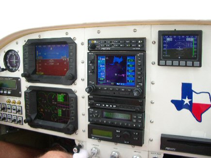 My dream panel, Chelton Sierra Sport with Grand Rapids EIS 4000 engine monitor which can be brought up on either Chelton screen. For back-up attitude indicator the DYNON EFIS D-10 with Battery back-up. The avionics are as follows: Intercom is a PS Engineering PCD 7100-I – World's only aircraft CD/MP3 player with built in IntelliVOX® intercom, a Garmin 530 NAV/COMM/GPS with Moving Map, Garmin G-106A VOR/ILS/GS/GPS CDI, Garmin SL-40 for the #2 COMM, Garmin GTX-330 Mode S Transponder, TruTrak Sorcerer AS Autopilot, and WSI - AV-100 Weather Data Link System